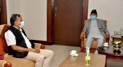 काठमाडौँ- गृहमन्त्री बालकृष्ण खाण र प्रदेश नं २ का मुख्यमन्त्री लालबाबु राउतबीच भेटवार्ता भएको छ