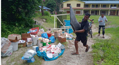 सिन्धुपाल्चोक– भ्रेमाथाङमा गत असार १ मा बाढीसँगै आएको पहिरोले क्षति पुर्याएको ४७ दिनपछि मेलम्ची खोलामा