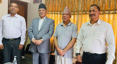 काठमाडौं -नेकपा माओवादी केन्द्रका अध्यक्ष प्रचण्ड माओवादीको विप्लव समहुका महासचिव नेत्रविक्रम चन्द र एमाले नेता