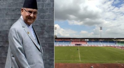 काठमाडौं– एमाले अध्यक्ष तथा पूर्वप्रधानमन्त्री केपी शर्मा ओली नेपाल र भारतबीचको मैत्रीपूर्ण फुटबल प्रतियोगिता हेर्न