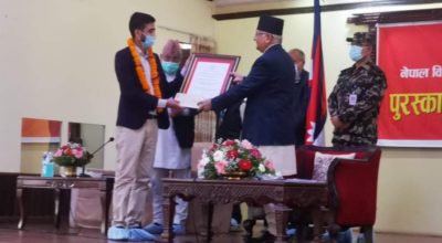 काठमाडौं- कान्तिपुर दैनिकका पत्रकार गोविन्द पोखरेल विज्ञान तथा प्रविधि पत्रकारिता पुरस्कार २०७७ बाट पुरस्कृत हुनुभएको