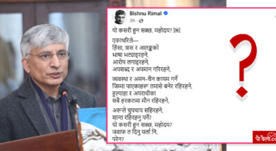 विष्णु रिमालको प्रश्न: ‘हिंसा, त्रास र आतङ्क फैलाउने अभिव्यक्ति दिँदा पनि सरकार किन मौन ?