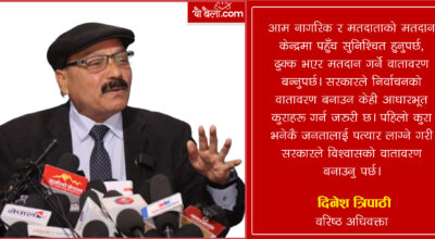सरकारले निर्वाचनका लागि विश्वासिलो वातावरण बनाउनुपर्छ: वरिष्ठ अधिवक्ता त्रिपाठी