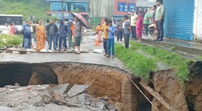 पोखरामा सडक र घर भासियो