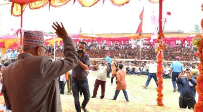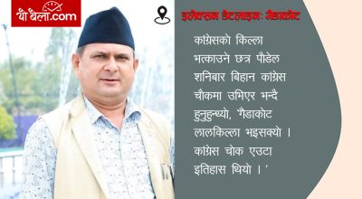 कांग्रेसचोकमा उभिएर एमालेका मेयर उम्मेदवार छत्र पौडेलको गर्जन– ‘गैंडाकोट अब लालकिल्ला भइसक्यो’