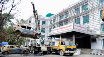 सिंहदरबारबाट आगजनी गरिएका सवारीसाधन हटाइँदै