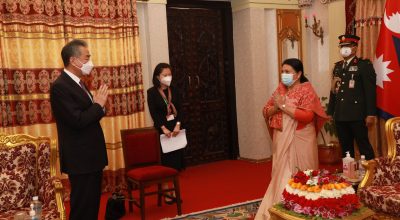 चिनियाँ विदेशमन्त्री शीतल निवासमा, राष्ट्रपतिसँग भेट