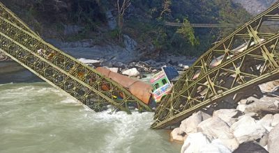 संखुवासभामा बेलिब्रिज भाँचीयो,तीनवटा ट्रक अरुण नदीमा खसे