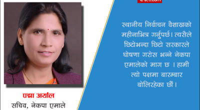 सरकारले स्थानीय निर्वाचनको मिति तत्काल घोषणा गर्नुपर्छ : पद्मा अर्याल