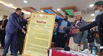 दशौं महाधिवेशनबाट अध्यक्ष भएकोमा पाँच उपमा सहित अध्यक्ष केपी ओलीलाई झापामा सम्मान (पूर्ण पाठ)