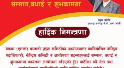 एमालेका केन्द्रीय पदाधिकारी र सदस्यलाई बागमती प्रदेशले सम्मान गर्ने