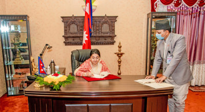 पुनः निर्माणका दस्तावेज विपद् जोखिम न्यूनीकरणमा ज्ञानका भण्डार : राष्ट्रपति भण्डारी