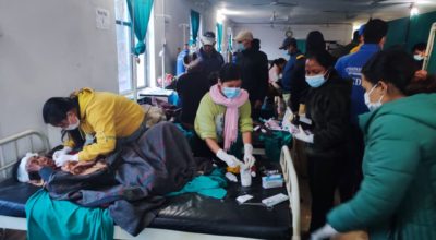 जाजरकोट बस दुर्घटनाका घाइतेलाई हेलिकप्टरबाट उपचारका लागि नेपालगन्ज लगियो