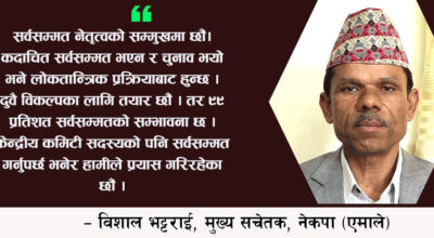 सर्वसम्मत नेतृत्व चयन हुनेमा ढुक्क हुनुहोस् : विशाल भट्टराई