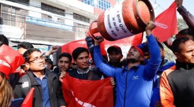 पेट्रोलियम पदार्थको मुल्यवृद्धि विरुद्ध सिलिन्डरसहित प्रदर्शन