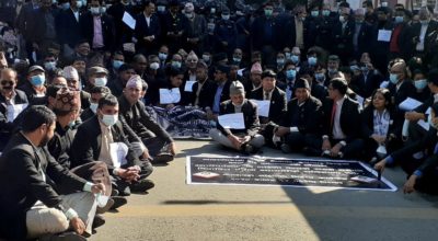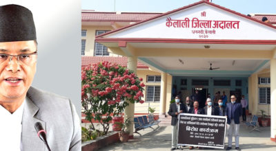 जबराको राजीनामा माग्दै जिल्ला अदालत कैलालीमा बारको धर्ना