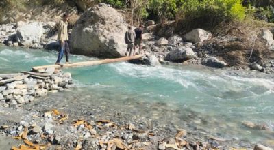 बाढीले पुल बगाएपछि काठबाट ओहोर-दोहोर