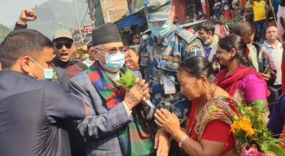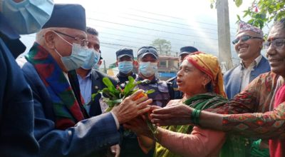 मदनको शालिकमा माल्यार्पण गर्न अध्यक्ष ओली मुग्लिन पुग्नुभयो