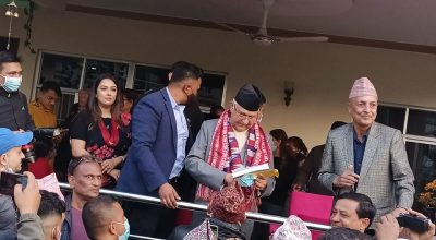 दशौं महाधिवेशनबाट अध्यक्ष भएकोमा पाँच उपमा सहित अध्यक्ष केपी ओलीलाई झापामा सम्मान (पूर्ण पाठ)