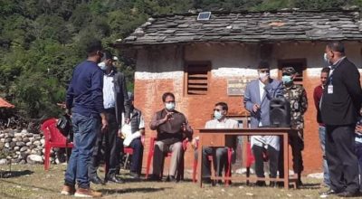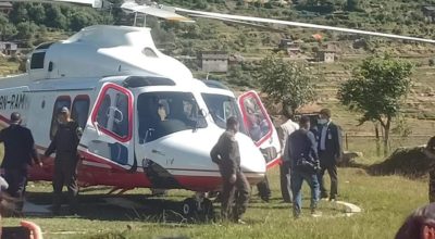 बैतडीको आकाशमा हेलिकोप्टरबाट तीन चक्कर लगाएर फर्किए प्रधानमन्त्री देउवा