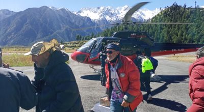 तीन दिनदेखि तुम्लिङ फसेका चार विदेशीको हेलिकोप्टरमार्फत उद्धार