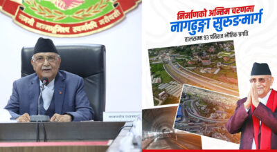 नौबिसे-नागढुङ्गा सुरुङमार्गकाे ९३ प्रतिशत काम पूरा: प्रधानमन्त्री ओली