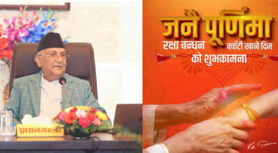 रक्षा बन्धन आत्मीयजनको सम्बन्धलाई अटल बनाउने पर्व हो: प्रधानमन्त्री ओली