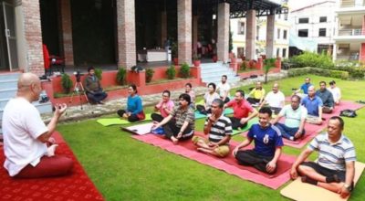 गुरु पूर्णिमामा योग सिक्दै फोटो पत्रकार