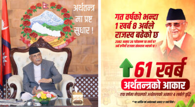 एक वर्षमै देशको अर्थतन्त्र ४ खर्ब बढेर ६१ खर्ब पुग्यो: प्रधानमन्त्री ओली