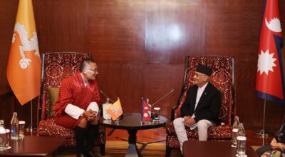 प्रधानमन्त्री ओली र भूटानी प्रधानमन्त्री तोब्गेबीच भेटवार्ता
