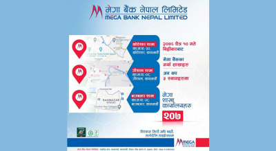 मेगा बैंकको काठमाडौंमा एकैपटक तीन ठाउँमा नयाँ शाखा