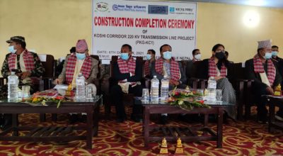 कोसी करिडोर २२० केभी प्रसारण लाइनको पहिलो खण्ड निर्माण सम्पन्न