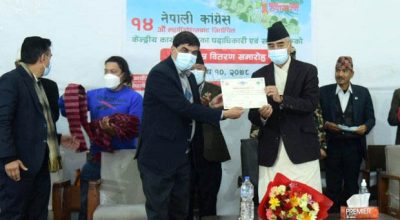 कांग्रेसका निर्वाचित पदाधिकारी र सदस्यलाई प्रमाणपत्र प्रदान
