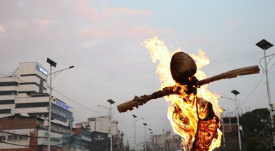 माओवादीको भ्रातृ संगठनद्वारा गृहमन्त्रीको पुत्ला दहन