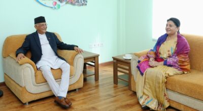 प्रधानमन्त्री ओली-पूर्व राष्ट्रपति भण्डारीको भेटवार्ता सकियो