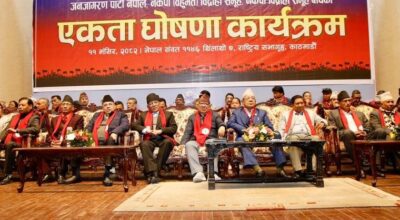 नेकपा र राजेन्द्र श्रेष्ठ नेतृत्वको जसपाबीच एकता घोषणा