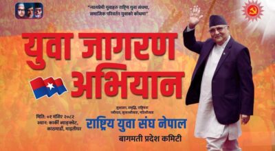 राष्ट्रिय युवा संघ नेपाल वाग्मतीको ‘युवा जागरण अभियान’ घोषणा हुँदै, अध्यक्ष ओलीबाट शुभारम्भ