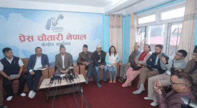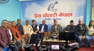 एमाले महासचिव पोखरेलले आज सञ्चारकर्मीसँग समसामयिक राष्ट्रिय राजनीतिका विषयमा संवाद गर्नुहुँदै