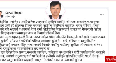 कानुन बिपरित चल्नेहरुलाई मंसिर नलाग्दै घिसारेर सडकमा ल्याइन्छ: सूर्य थापा
