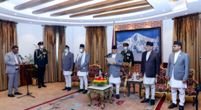 राष्ट्रपतिबाट नवनियुक्त मन्त्रीलाई शपथ
