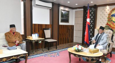 प्रधानमन्त्री प्रचण्ड र अध्यक्ष ओलीबीच बालुवाटरमा भेटवार्ता