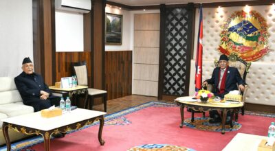 बालुवाटारमा प्रधानमन्त्री प्रचण्ड र एमाले अध्यक्ष ओलीबीच भेटवार्ता