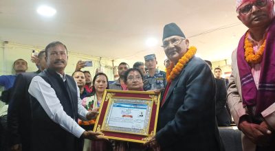 एमाले अध्यक्ष केपी ओलीद्वारा निर्वाचित प्रमाणपत्र ग्रहण