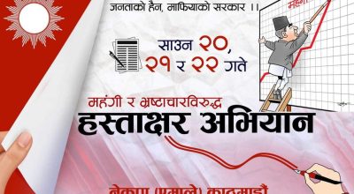 महंगी र भ्रष्टाचार विरुद्ध एमालेले आज देखि हस्ताक्षर अभियान चलाउने