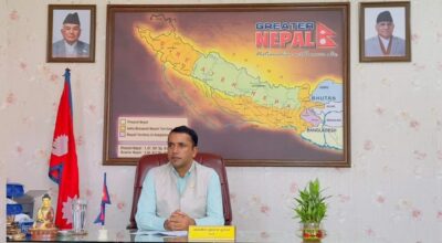 बागमती प्रदेश: भौतिक पूर्वाधार विकास मन्त्रीको कार्यकक्षमा ग्रेटर नेपालको नक्सा