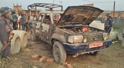 सर्लाहीमा प्रहरीको गाडीमा आगजनी