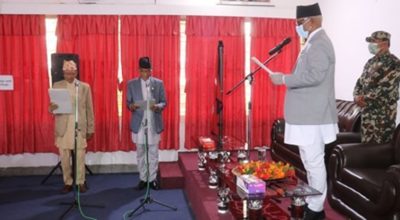 कर्णाली प्रदेश : कांग्रेसबाट सहभागी दुई मन्त्रीद्वारा सपथ ग्रहण