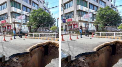 काठमाडौं महानगरपालिका कार्यालय नजिकै सडकमा भ्वाङ