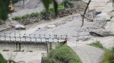 ताप्लेजुङमा बाढीले पुल बगाएपछि सडक अवरुद्ध