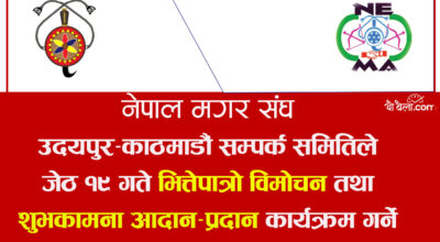 मगर संघ, उदयपुर-काठमाडौं सम्पर्क समितिले जेठ १९ गते शुभकामना आदान-प्रदान कार्यक्रम गर्ने